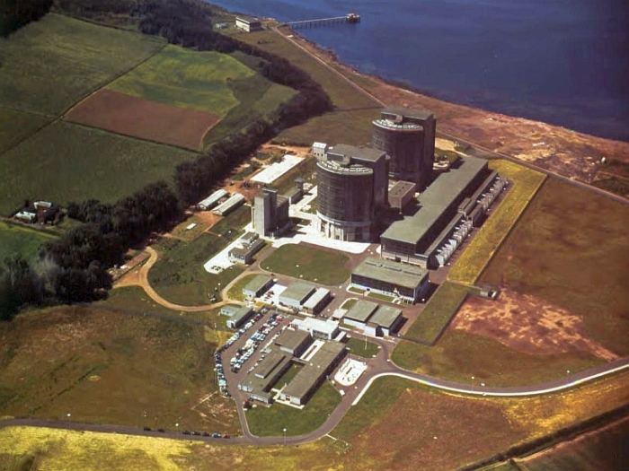 More than a dozen ancillary buildings, mainly clustered around the feet of the massive parents made up the Hunterston scene, providing contrast and giving scale to the two reactor buildings which with their large areas of glass had an elusive quality of lightness.
