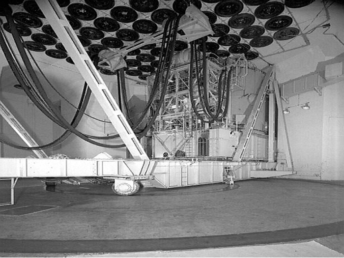 The charge machine, mounted on a travelling carriage on a turntable made a sealed connection with the bottom of the reactor - closing over the ends of the various standpipes carrying the fuel channels - and made fuel changes by remote control while the reactor was still on load and under full gas pressure. It was able to invert fuel channels and change position of elements to ensure that the available heat from each element was used to its full extent.